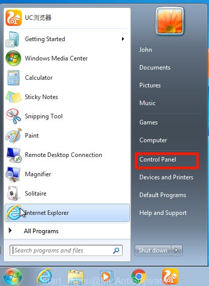 First, press ‘Start’ button and select ‘Control Panel’ at right panel as displayed in the figure below.